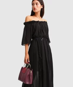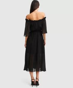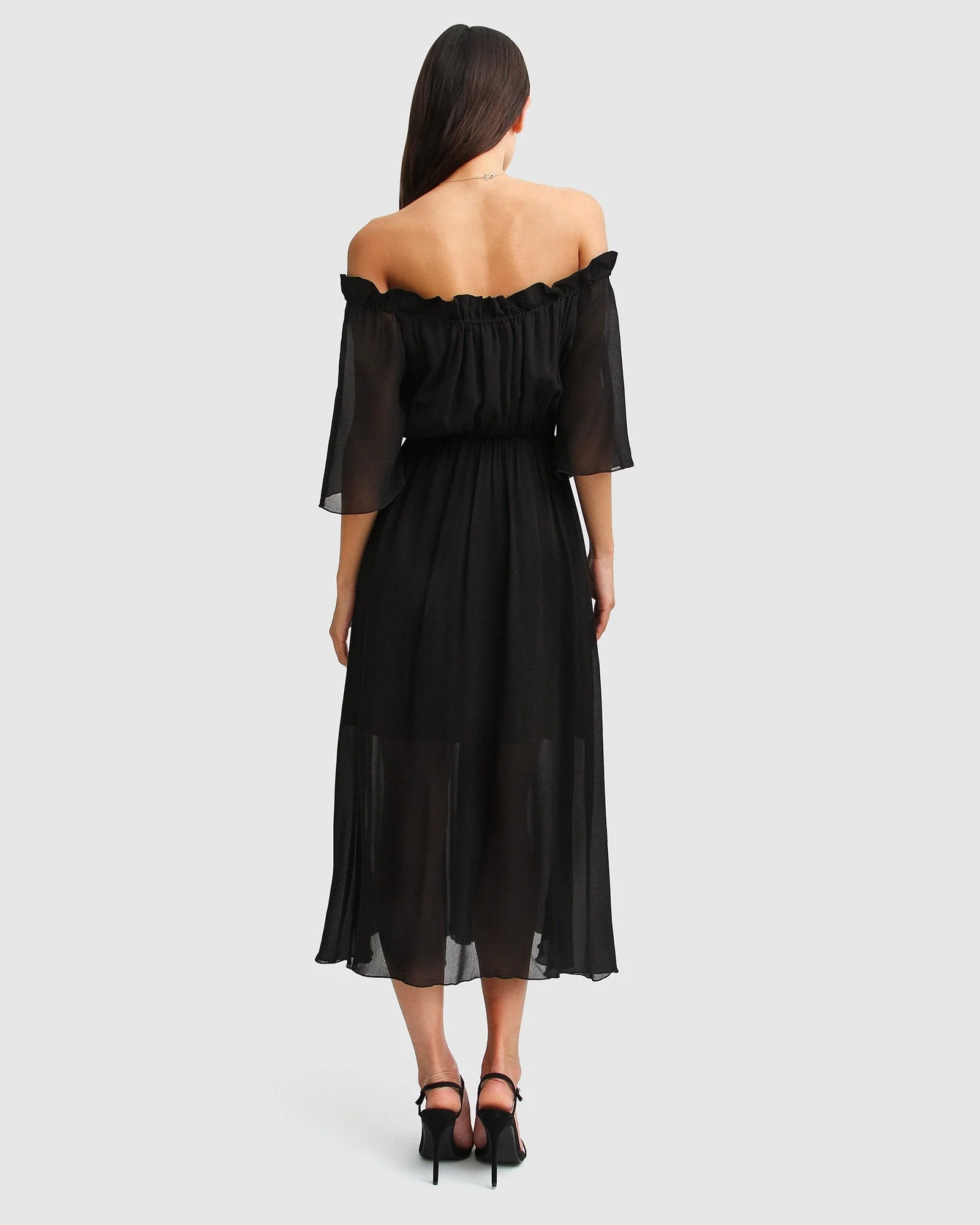 The Amour Amour Ruffled Midi Dress is an ultra boho dress, wear it on or off the shoulder. Pair it with sandals for the beach, or glam it up with heels and statement earrings for the evening.