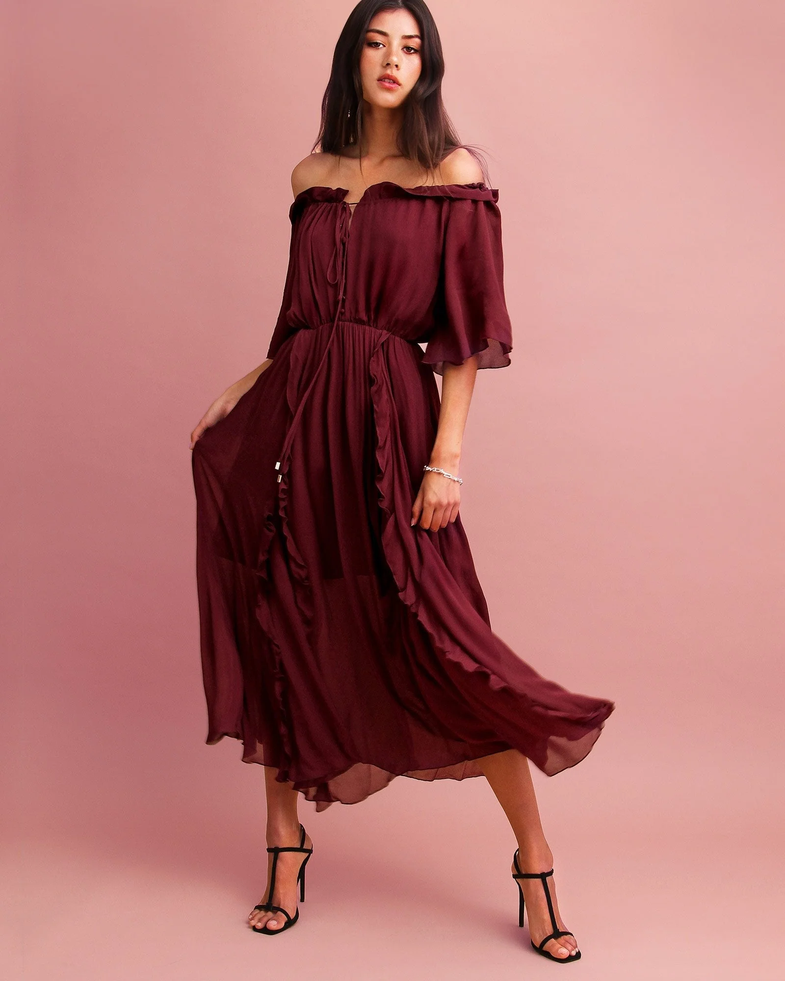 The Amour Amour Ruffled Midi Dress is an ultra boho dress, wear it on or off the shoulder. Pair it with sandals for the beach, or glam it up with heels and statement earrings for the evening.