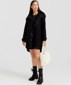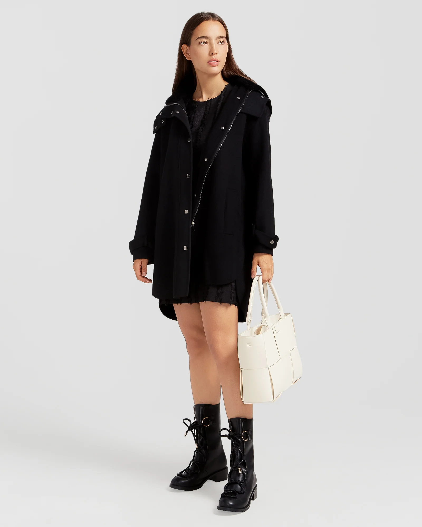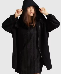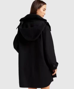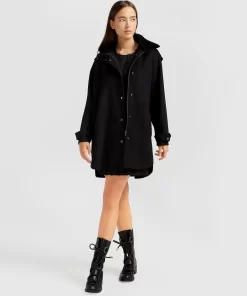 Belle & Bloom Heavy Hearted Wool Blend Detachable Hooded Coat – Black Black | Womens Wool Coats