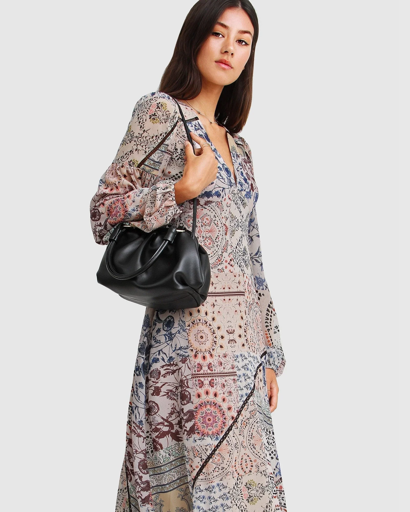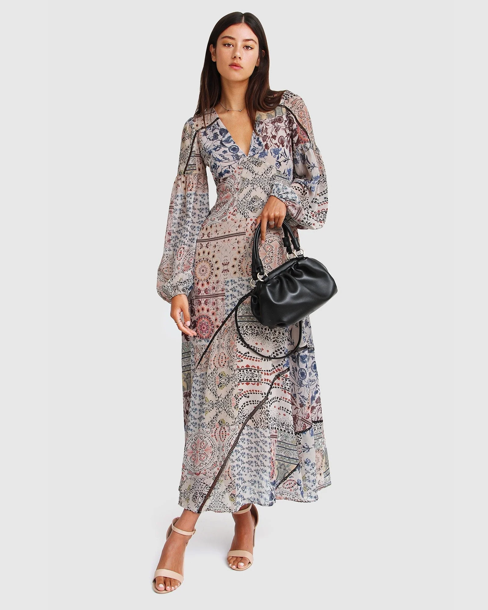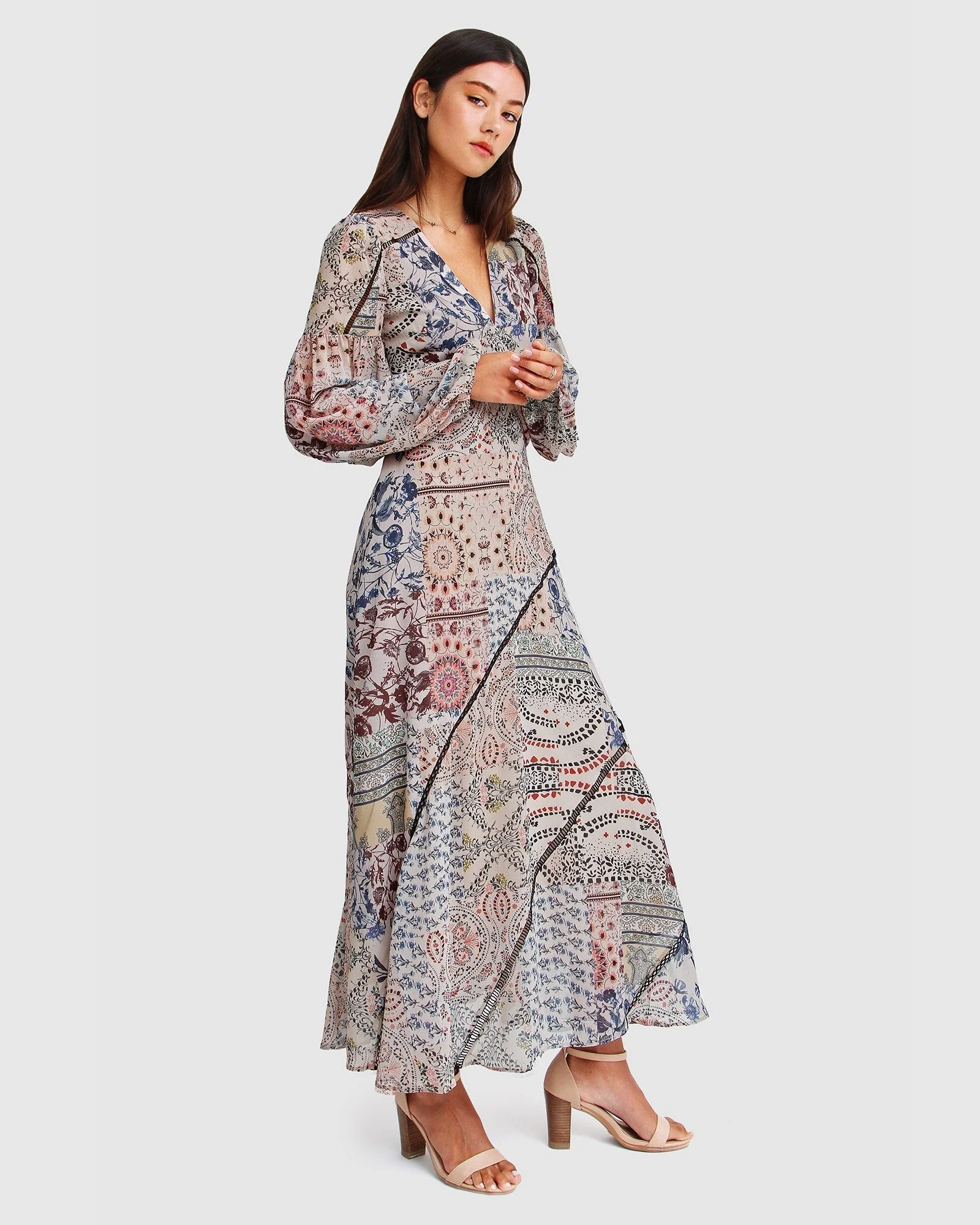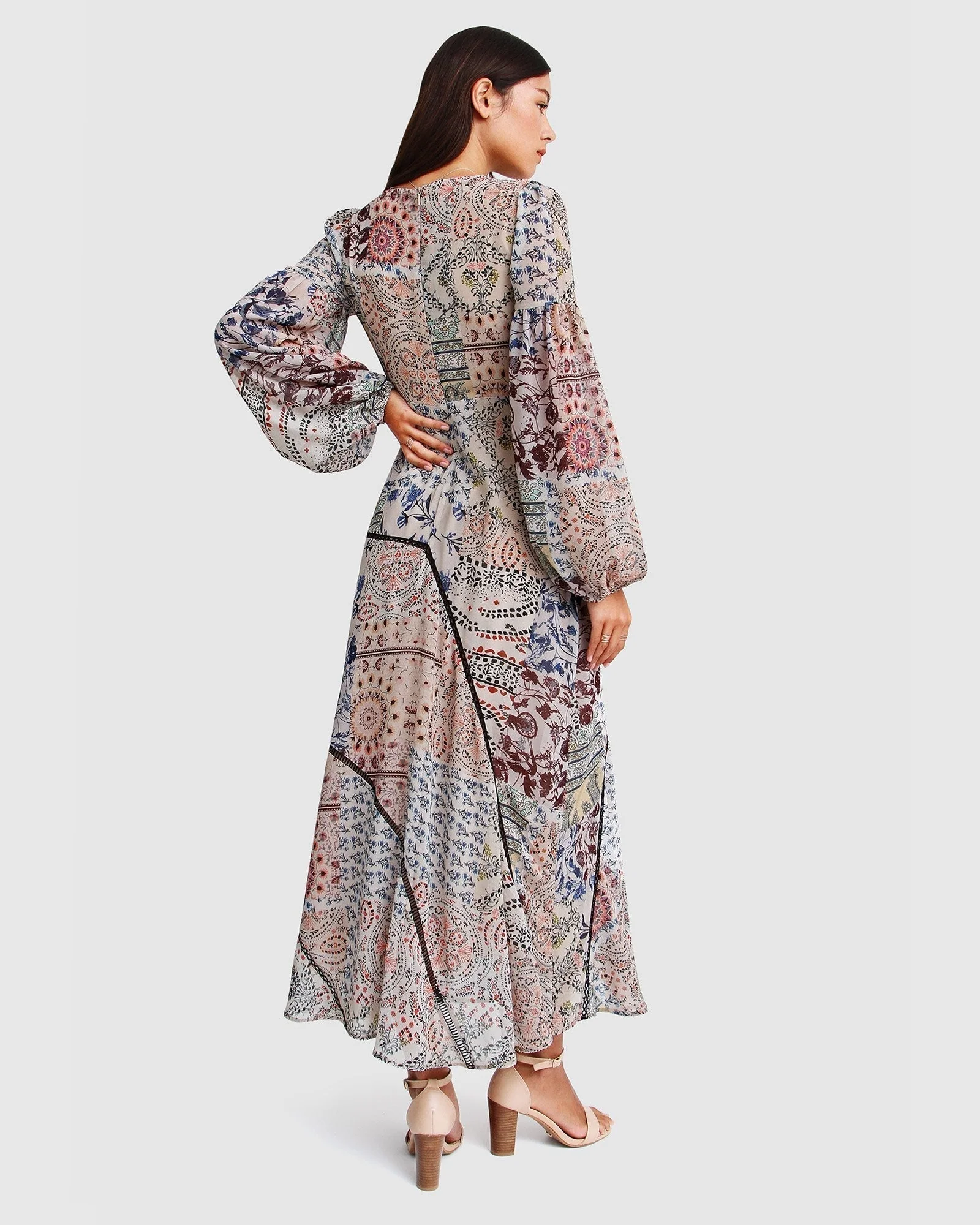 Beautifully cut on the bias, the In Your Dreams Maxi Dress hugs your curves in a feminine and bohemian print complete with billowy balloon sleeves.