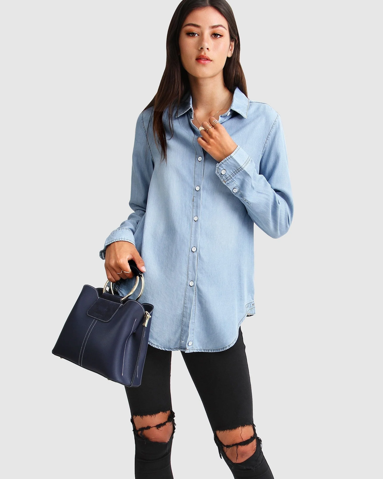 Belle & Bloom Keep Me Wild Denim Top – Indigo Indigo | Womens Blouses