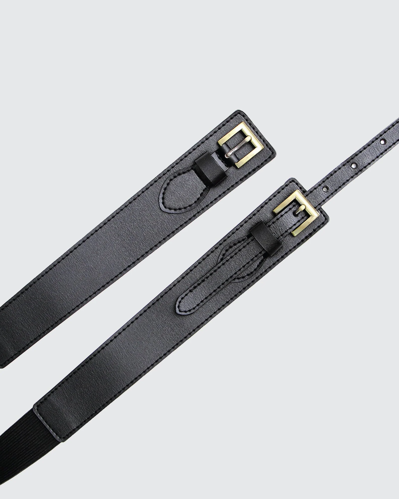 The perfect pairing to any dress, the London Fog Leather Waist Belt cinches your waist to make any outfit even more figure complementing. This genuine leather belt has adjustable buckles and elastic portion makes this a great fit all day long.
