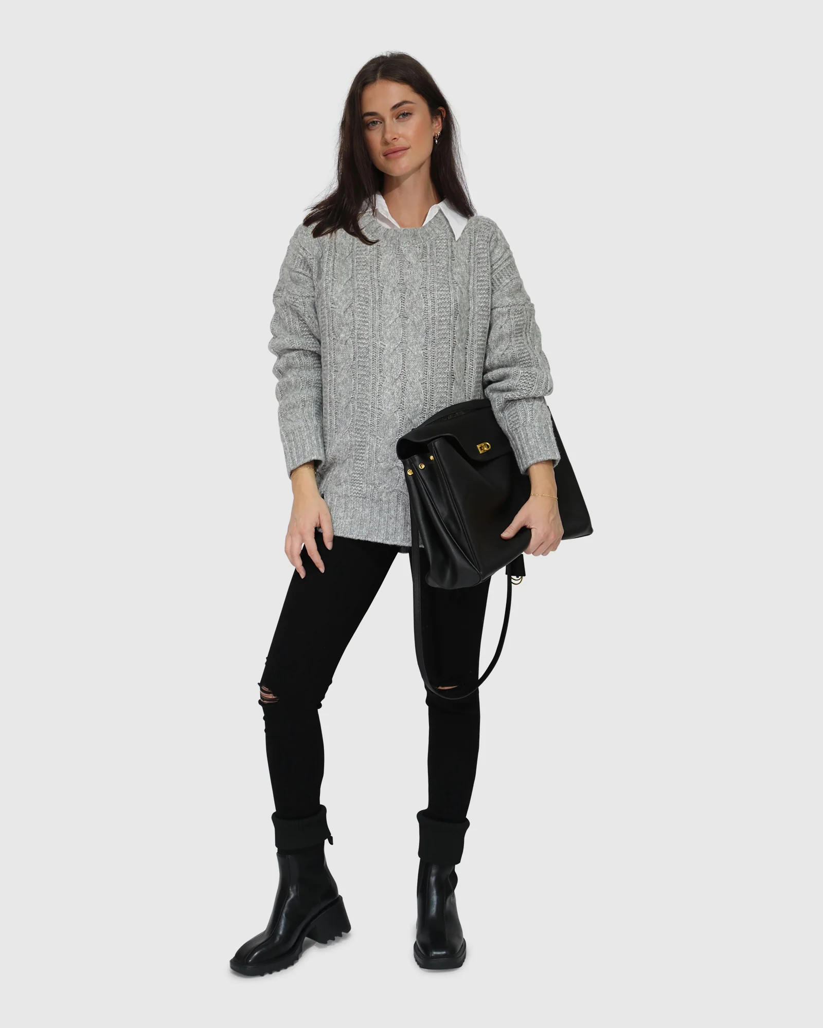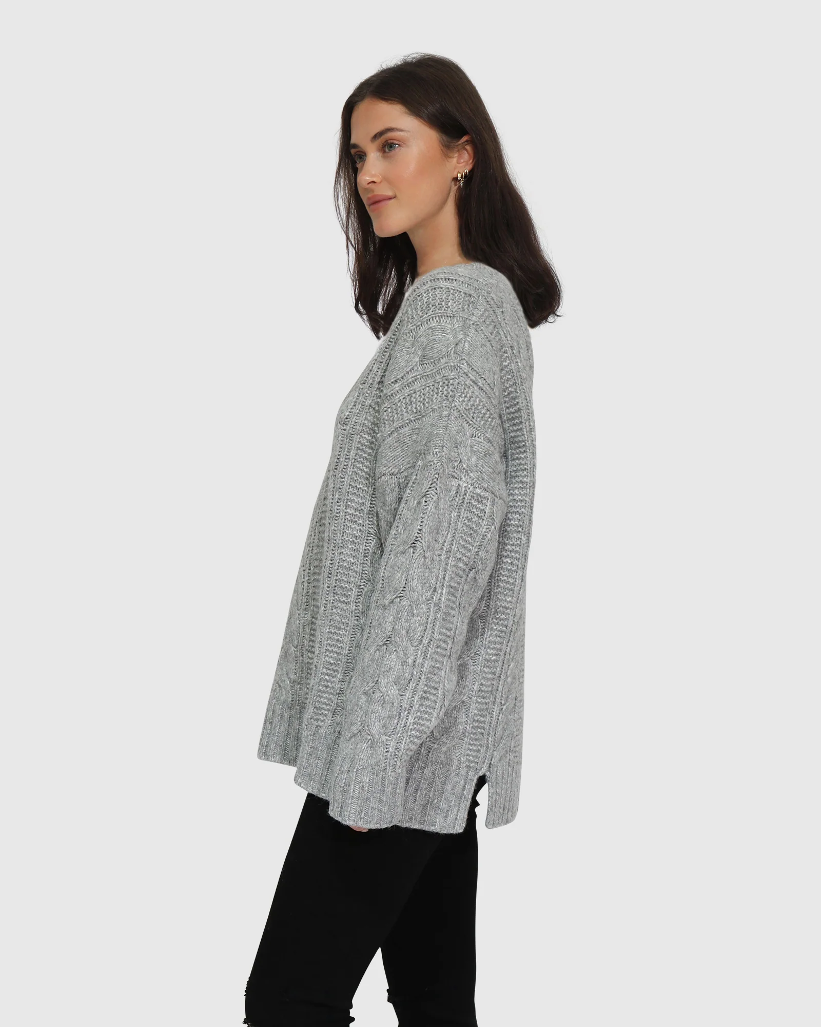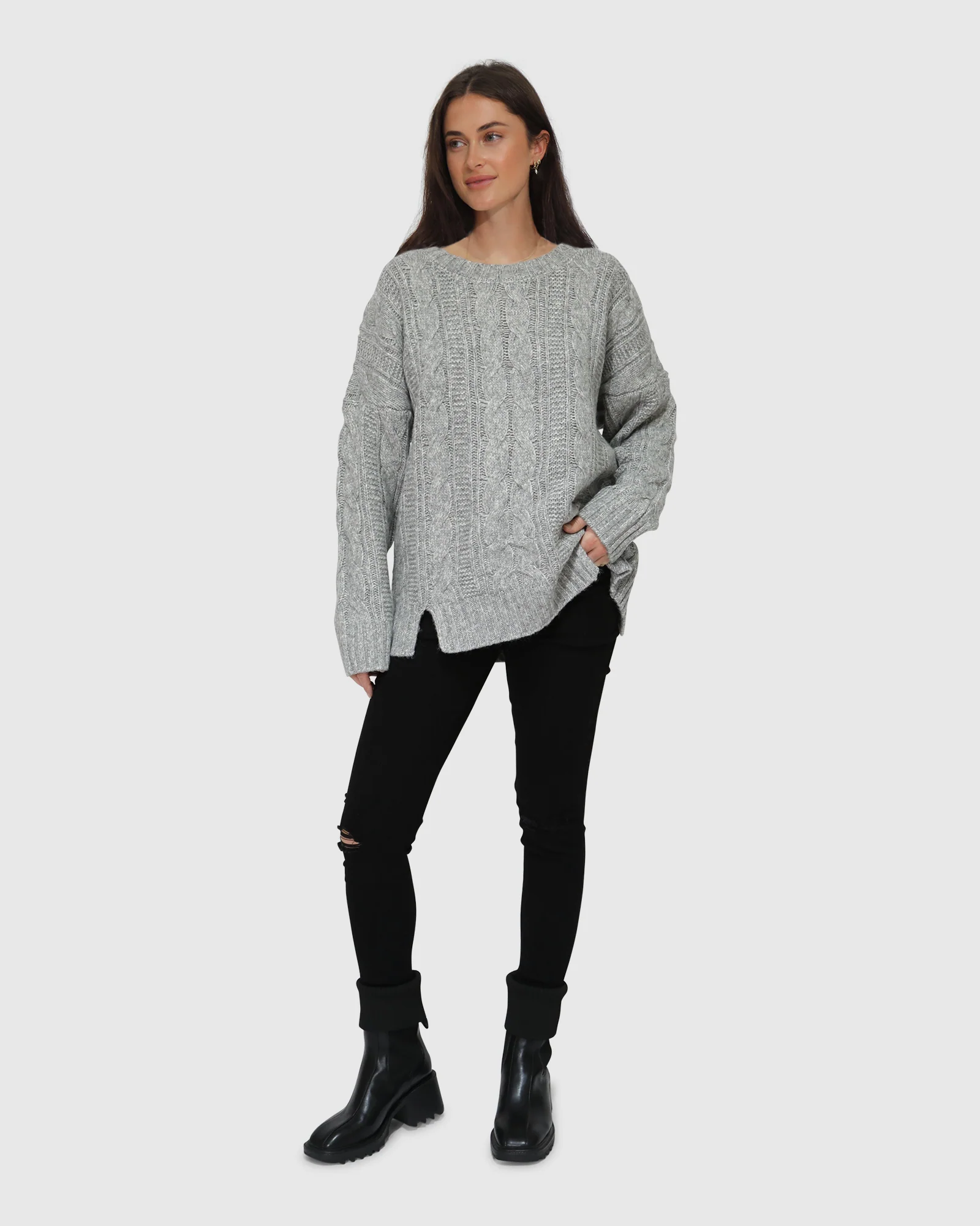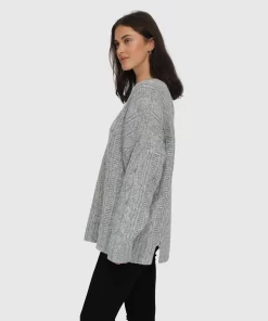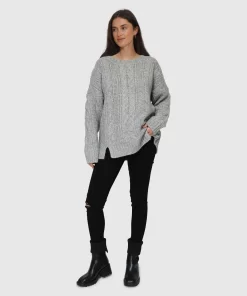 Belle & Bloom Perfect Me Oversized Crew Sweater – Grey Grey | Womens New