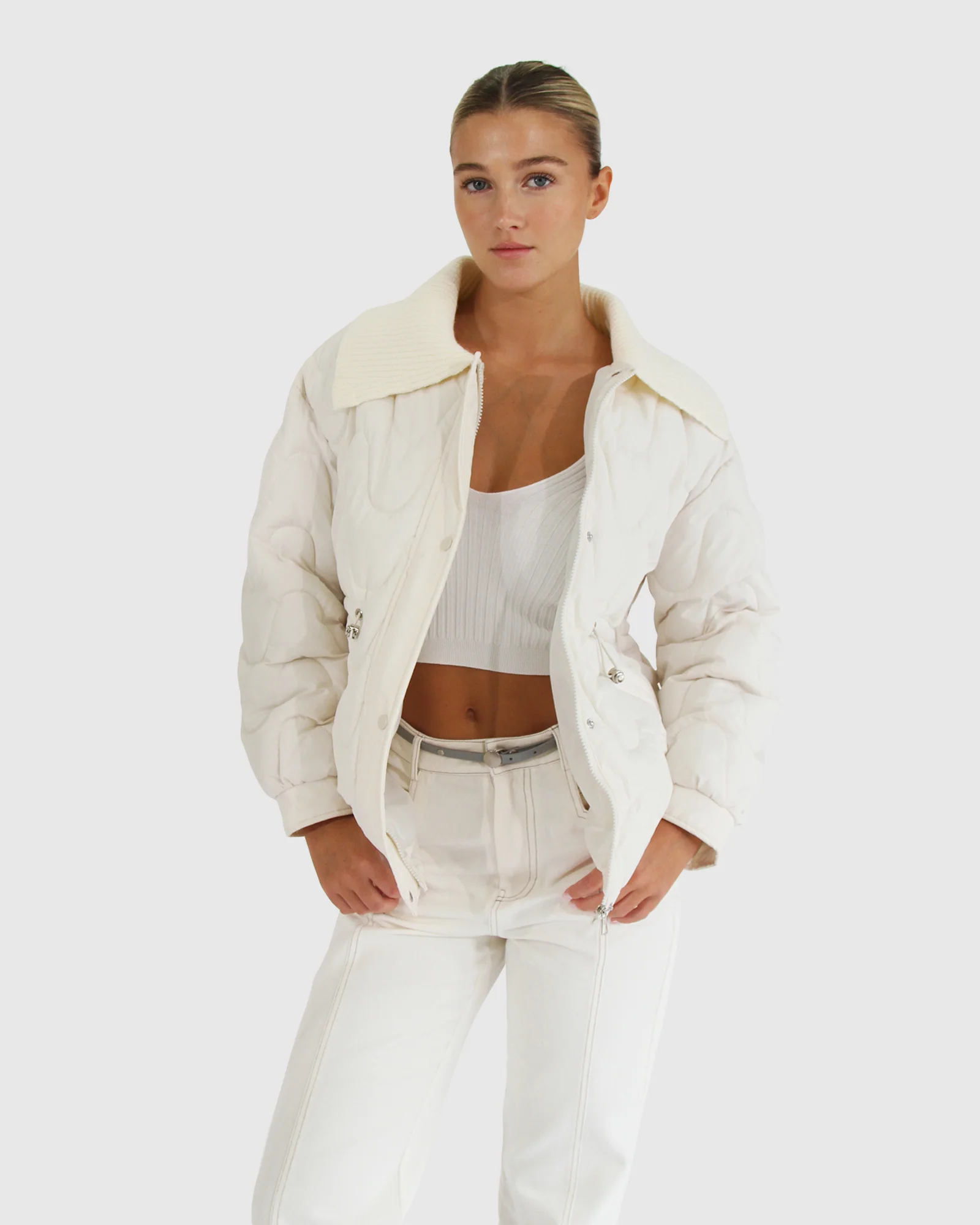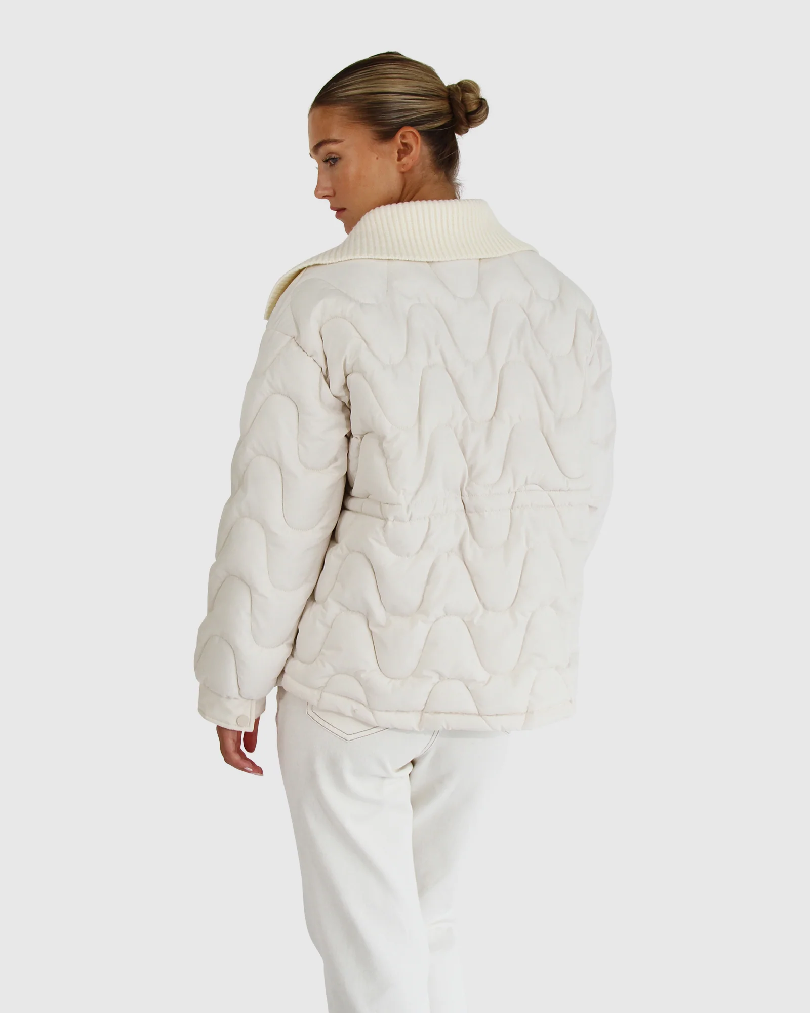 Classic quilting just got an update! Have some fun staying cozy this winter with the See You Again Quilted Jacket. Featuring a wavy quilted design, drawstring waist, ribbed collar and pockets, this jacket really does have everything!