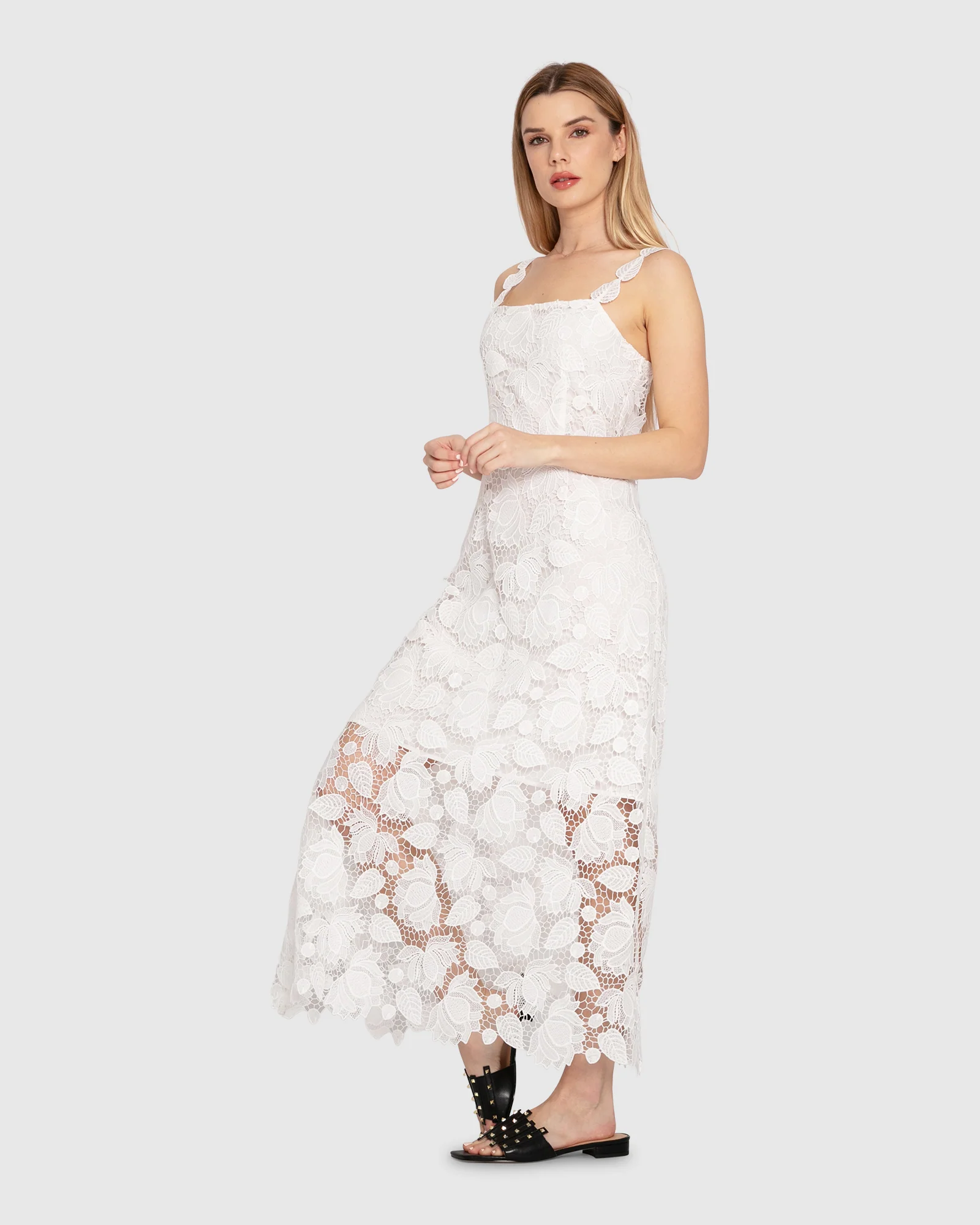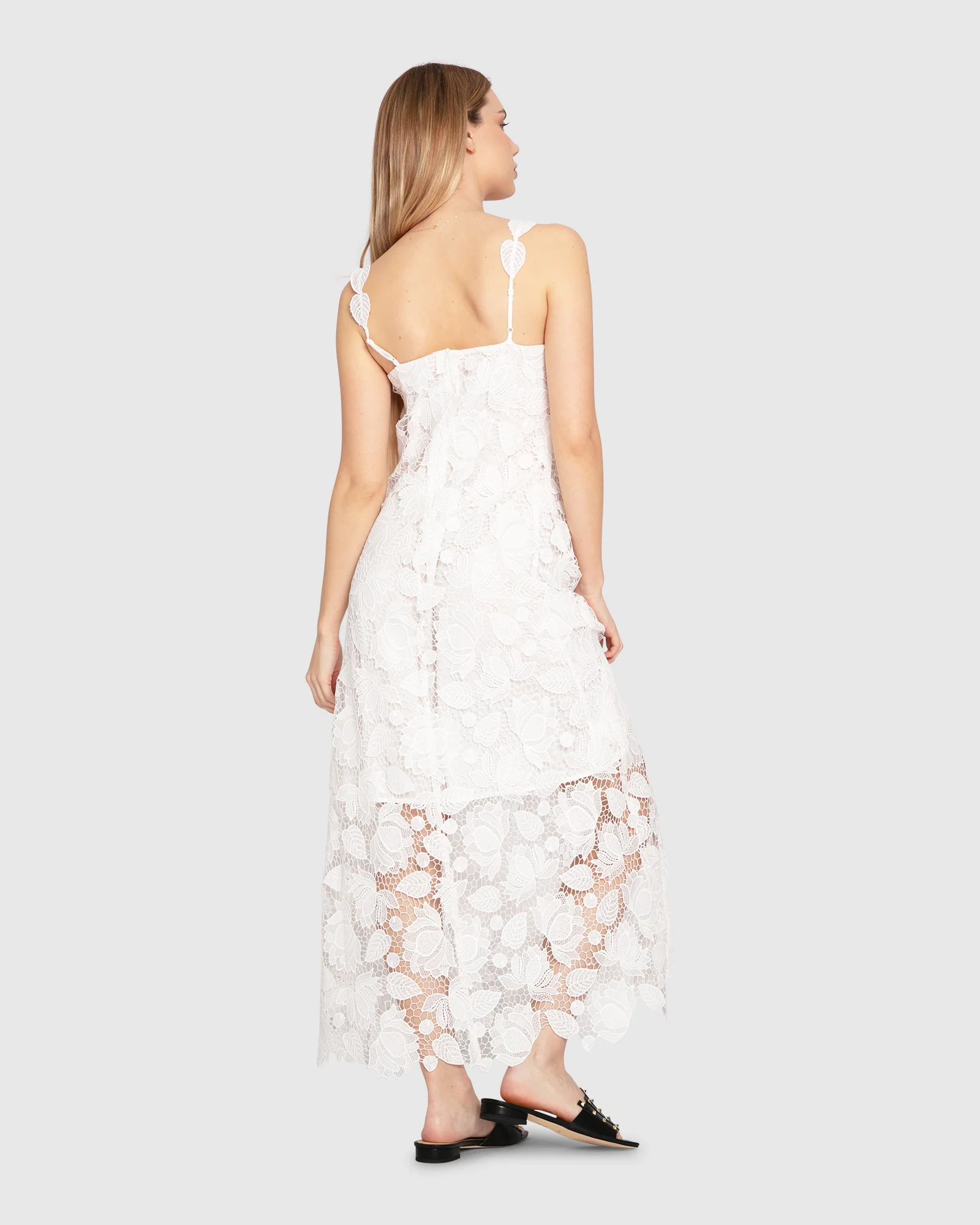 The Songbird Lace Maxi Dress is the perfect combination of bohemian and modern city styling. Featuring adjustable straps with lace motif details, a half lining for a light and breezy summer feel and a scalloped hem that showcases the intricate custom lace design.