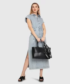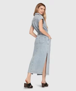 Belle & Bloom Sundown Denim Midi Shirt Dress – Stonewash Stonewash | Womens Midi Dresses