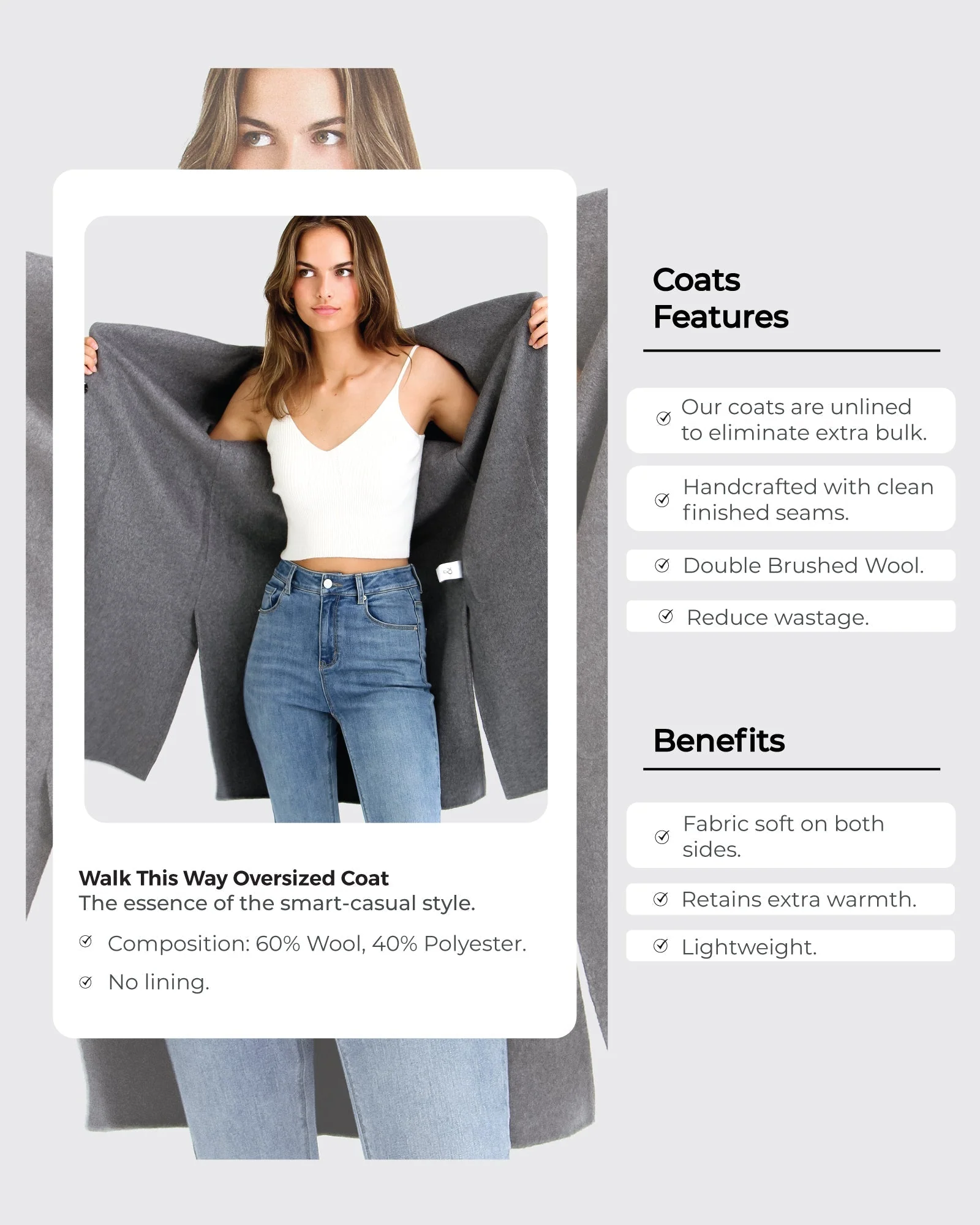 - Double brushed wool, no lining
