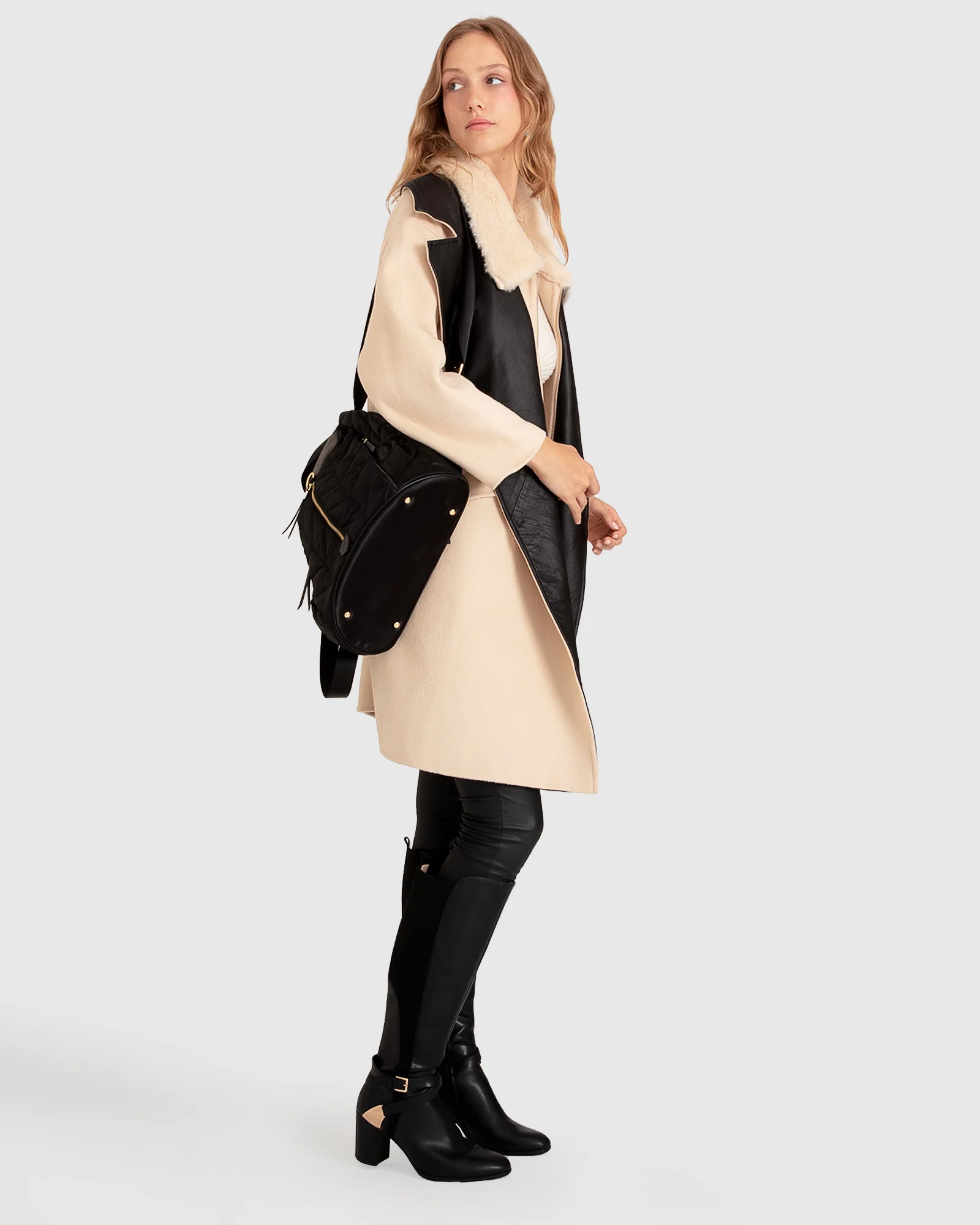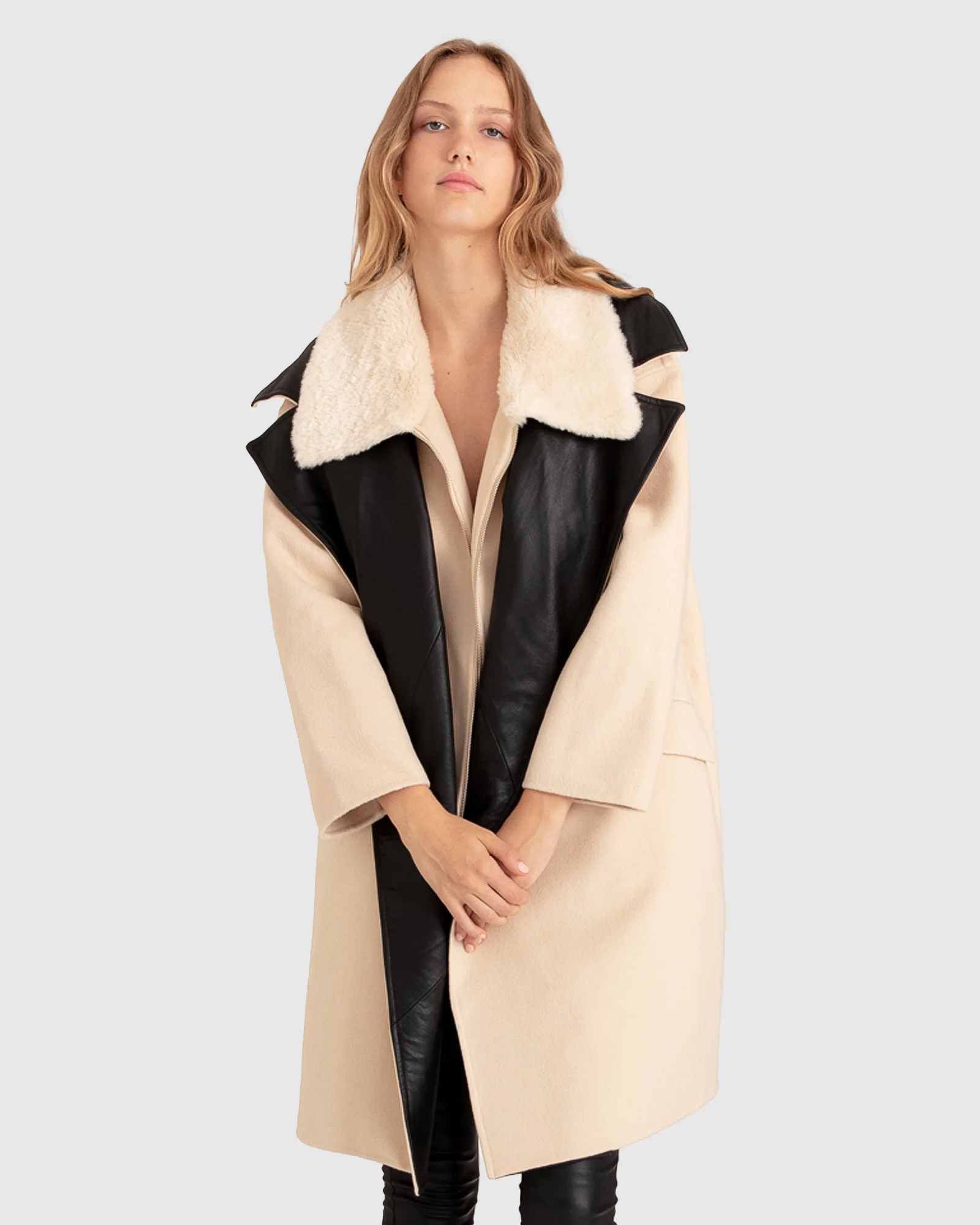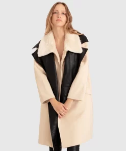Belle & Bloom Watch Me Go Oversized Leather Trimmed Coat – Pale Oat Pale Oat | Womens Leather Jackets