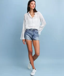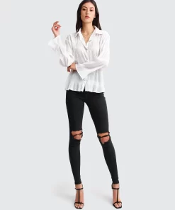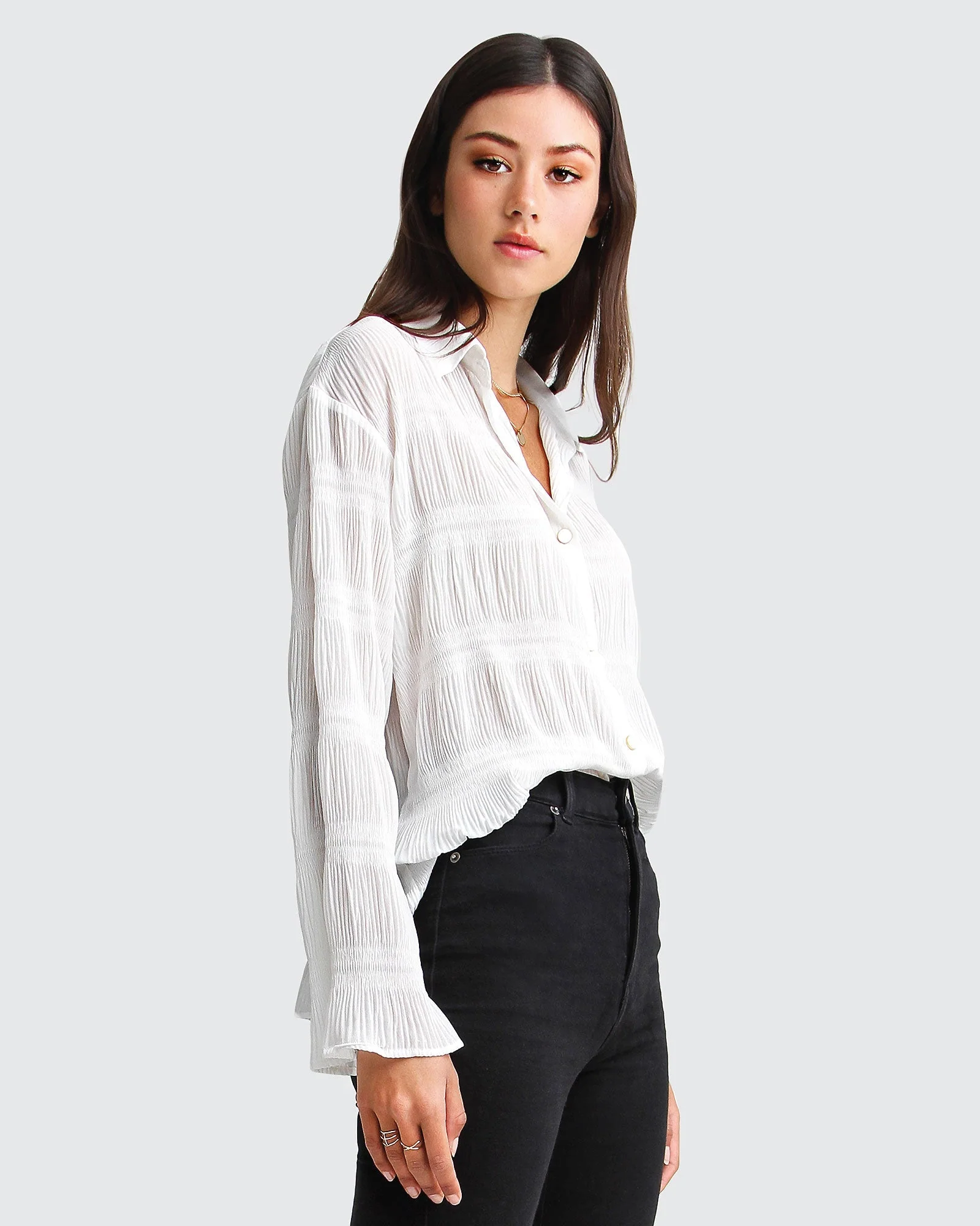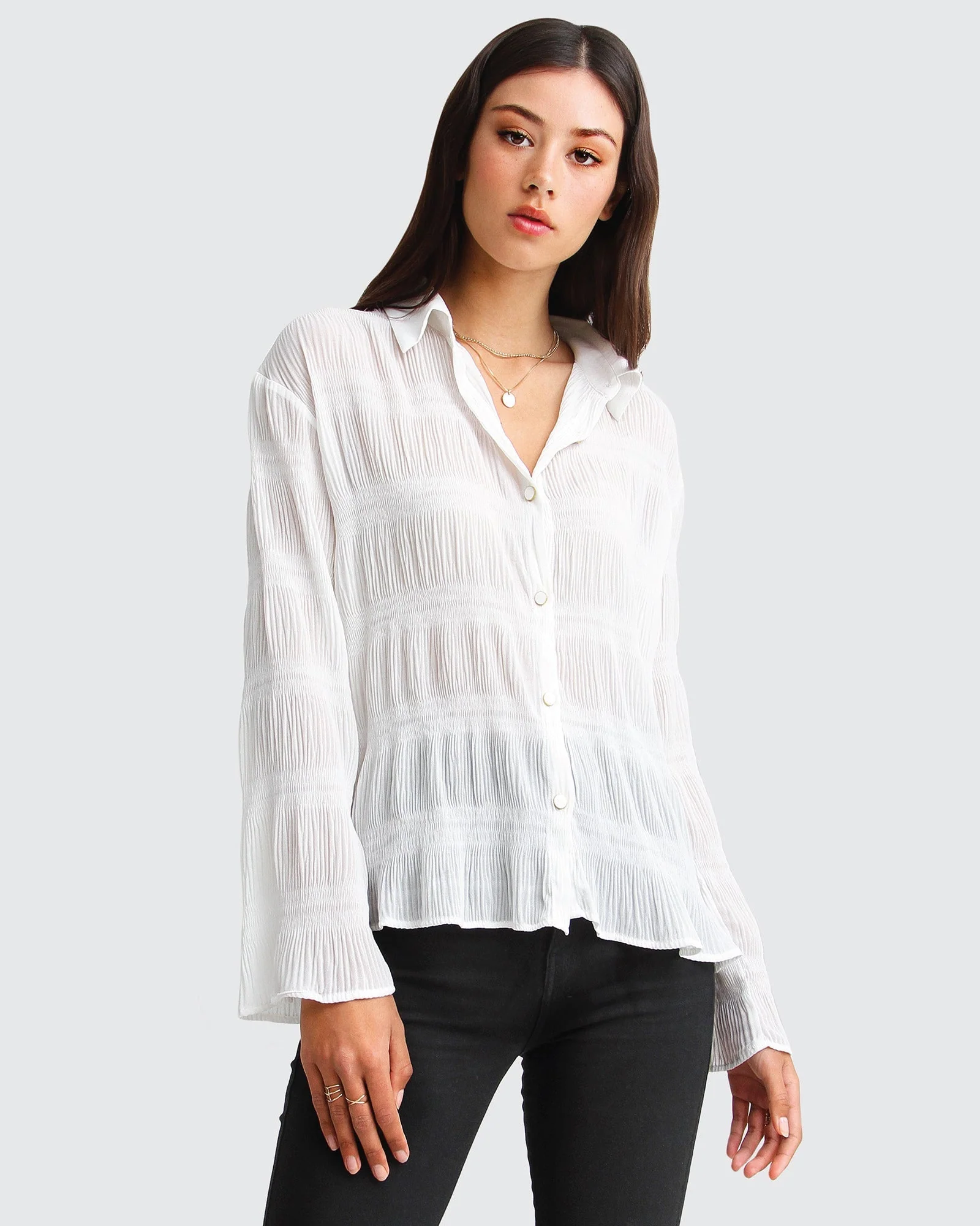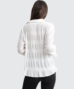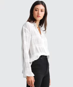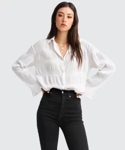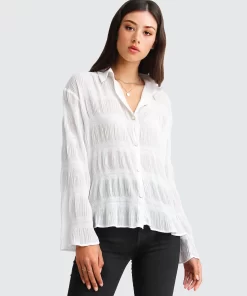 Belle & Bloom Yoko Shirred Chiffon Blouse – Cream Cream | Womens Blouses